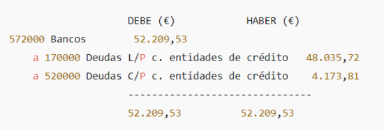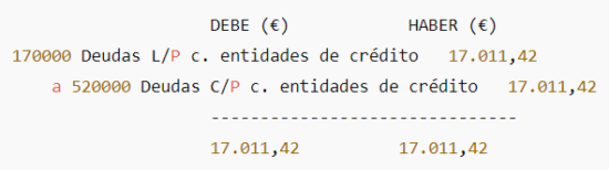 - Prepara el asiento: cargar (restar) la cuenta de largo (170/171) y abonar (sumar) la de corto (520/521). Al final del post tienes un ejemplo con un cuadro de amortización real.